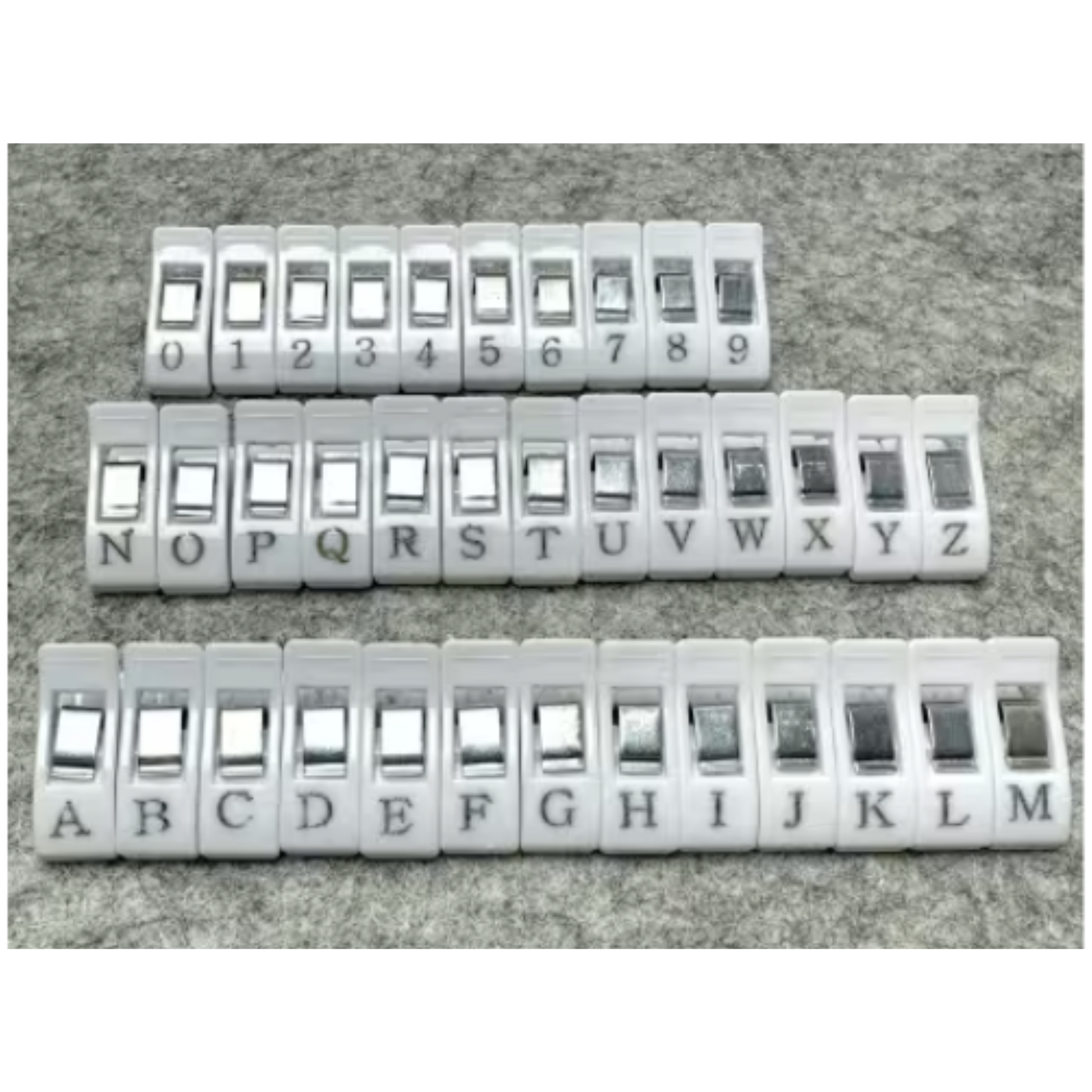 Great for embroidery projects when you don’t want to hoop the fabric, you can clip the fabric to the stabilizer or the hoop itself. They are 36 clips each engraved with a letter or number in the 1" size.